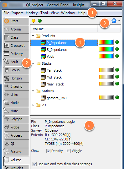 Control Panel tabs contain all the items loaded in the current session. See Project vs Session to learn more about sessions and projects in Insight.