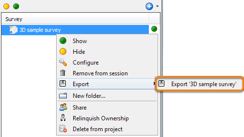 You can export a 2D/3D survey to a file. The exported survey file contains only the 2D line or IL/CL geometry, depending on the survey type.