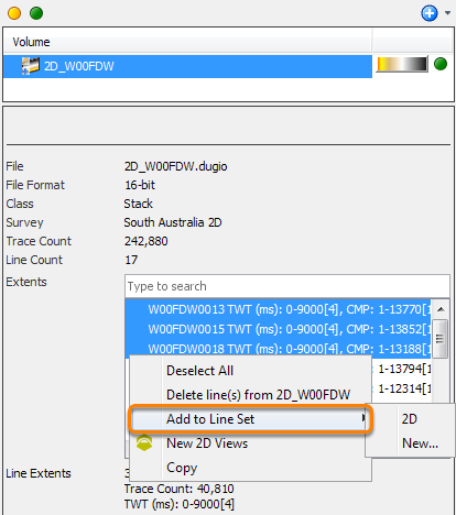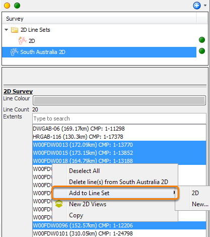 - Right click and select Add selected lines to Line Set. You can choose to add the lines to an existing set or create a New set.