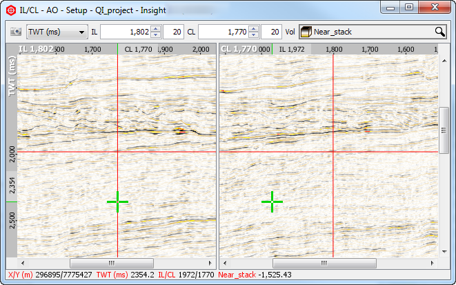 - IL and CL — The IL and CL boxes show the current location of the inline and crossline. Next to these are their corresponding increments: the amount of movement of each click/scroll when increasing/decreasing the inline and crossline.