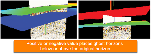 Note: By default, the new horizon will be named: “horizon_name (ghosting amount and domain)”. For example, the operation above will yield a new horizon called "Sample Horizon (-500 ms TWT)". To rename the horizon, see Horizon Details and Configuration.