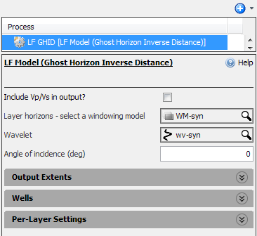 The Low Frequency Model (GHID) process constructs detailed layered models from well data and supporting information. Window model layers are automatically divided by ghost horizons using the conformability specified in the windowing model. Well values are selected for the model at the intersection between each well and the ghost layer. These values are combined according to the specified per-layer settings.