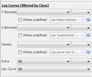 - At P Slowness, S Slowness and Density, select the P slowness curve, S slowness curve and density curve, and their respective units of measurement.