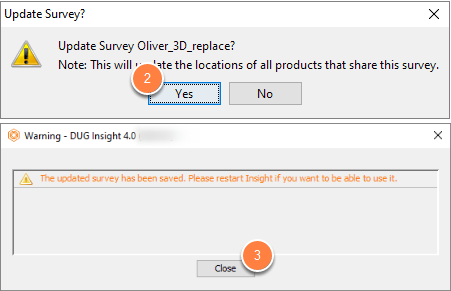 - Once you have made changes to a survey, the Update Survey? window will appear to warn you that it will update the locations of all products that share the survey.