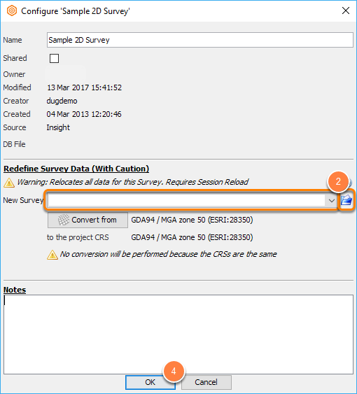 Click OK to proceed, or click Cancel to cancel redefining the survey.