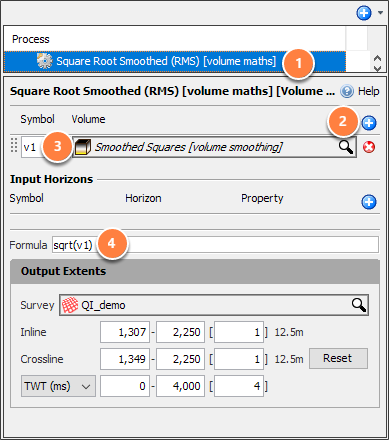 - In the Process tab, add a new Volume Smoothing process (see Volume Smoothing).
