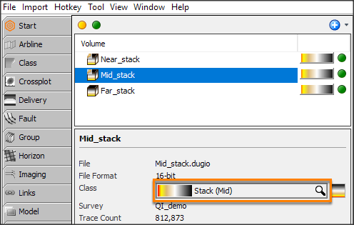 Remember, all data of the same type should share the same class! If you want to change a volume’s class, select it, then choose the right one in the details panel.