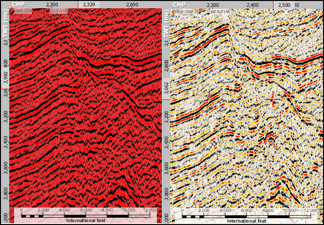 That estimate button isn’t just for volumes. It comes in handy when working with horizons too. Here’s a case where the detail in this horizon is lost because the class range is too wide.