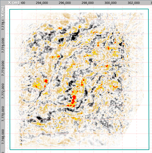 - In the map view, view a deep time slice near the bottom of the data.
